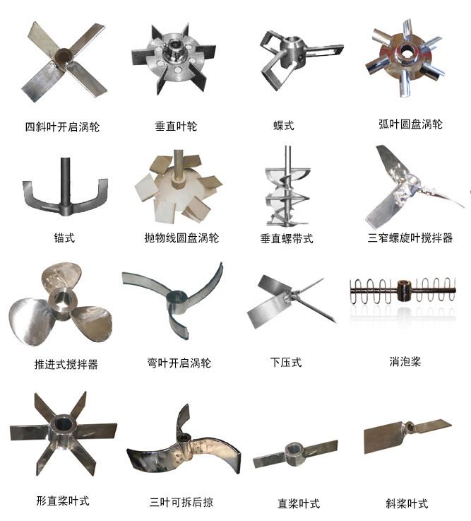 渦輪式攪拌器分為圓盤渦輪攪拌器和開啟渦輪攪拌器;按照葉輪又可分為平直葉和彎曲葉。渦輪攪拌器速度較大,300~600r/min。