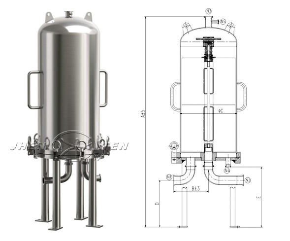 整體結構按照衛(wèi)生級要求設計制造,料液無殘留,極易清洗,高精度拋光;采用下進下出式結構設計,有效避免料液的紊流,提高過濾性能